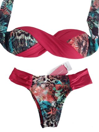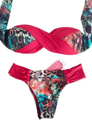 Bikini Brasileño Nuevo con etiquetas 🏷️ Color: Rojo y estampado TOP: estilo bandeau TANGA: estilo mariposa TALLA: P brasileña (viste como una XS) Marca: Rosa Tropical FIBRA LYCRA mayor durabilidad Lycra de muy buena calidad. 90% Poliamida 10% Elastano Forro 100% Poliamida. 🎁 Te invito a visitar mi perfil, tengo más bikinis brasileños 😊 📦 Envío rápido y bien embalado 📦 #bikini #bikinis #tallas #bikinibrasil #bikinibrasileño #bikinibrasileiro #nuevoconetiqueta