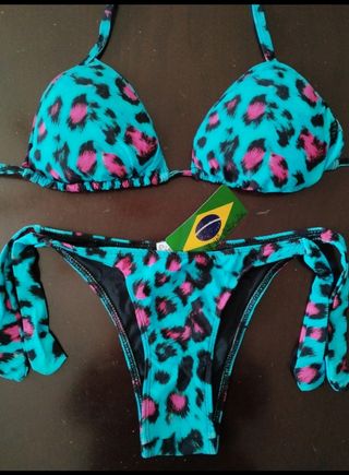 Bikini Brasileño Nuevo con etiquetas 🏷️ y protección higiénica 🏷️ Color: Azul con Estampado Rosa y Negro estilo animal print TOP: estilo cortinilla con un poquito relleno fijo. TANGA: para amarrar en las laterales TALLA: P brasileña (es una S) Marca: RioBKN Brasil 👉TALLAS DISPONIBLES: P, G y GG brasileño 👉 S, M y L 🚨Escríbeme indicando la talla deseada🚨 Lycra de muy buena calidad. 90% Poliamida 10% Elastano Forro 100% Poliamida. 🎁 Te invito a visitar mi perfil, tengo más bikinis brasileños 😊 📦 Envío rápido y bien embalado 📦 #bikini #bikinis #tallas #bikinibrasil #bikinibrasileño #bikinibrasileiro