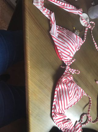 Bikini de rayas rojas y blancas talla L/44 está nuevo sin estrenar lleva su etiqueta y lleva el protector de la braguita precio algo negociable