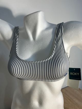 Top de bikini con un diseño de rayas verticales. - Tejido elástico y acanalado. - Tirantes anchos para mayor comodidad. - Escote redondo.