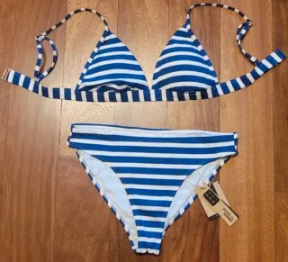 Bonito bikini a rayas en azul y blanco. Ideal para el verano. - Bikini de dos piezas. - Diseño de rayas. - Acabados delicados.