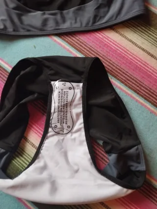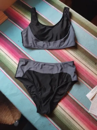 Conjunto de bikini de dos piezas. - Diseño moderno con paneles en contraste. - Parte superior tipo top. - Braguita de corte clásico. Nuevo sin estrenar. Me va grande.