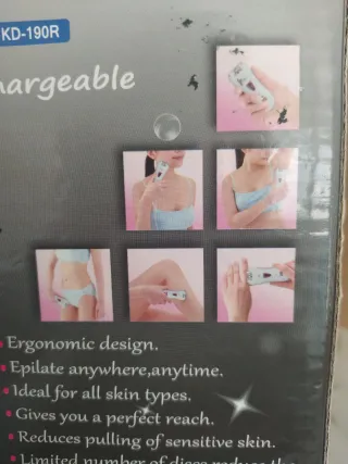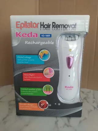 Depiladora Keda KD-190R recargable ideal para el cuidado personal. Depilación facial para mujer, pinzas eléctricas, labios, barbilla, brazos, piernas, bikini. - Voltaje global 100V-240VAC 50/60Hz, perfecta para viajar. - Smartlight para iluminar y ver mejor los vellos. - Diseño delgado para alcanzar zonas sensibles. - Número limitado de discos para reducir la sensación en la piel.