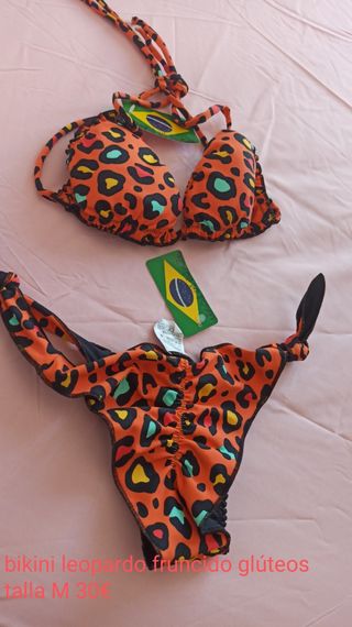 promoción última unidad bikini bañador importado de Brasil leopardo con fruncido glúteo efecto push up.