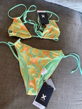 Bikini de dos piezas con estampado retro totalmente nuevo sin estrenar. Marca Oysho. Precio original 40€. Lo compré online y me queda pequeño.
