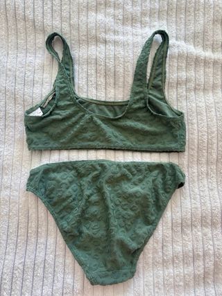 Preciosa conjunto de bikini de Zara. Está en perfecto estado y listo para usar. - Diseño elegante y favorecedor. - Tejido de canalé suave y agradable al tacto. - Incluye braguita y parte superior. -Arreglada la braguita para hacer un poco mas pequeña