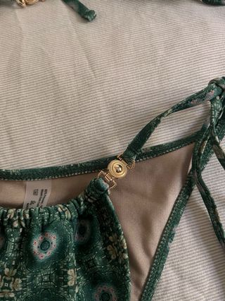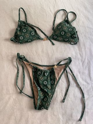 Bikini verde estampado con detalles dorados