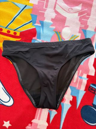 Bikini menstrual de color negro. Talla L 42-44 Puesto en una sola ocasion ya que me equivoqué de talla. - Diseño de corte clásico. - Tejido cómodo y elástico.