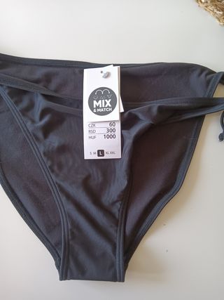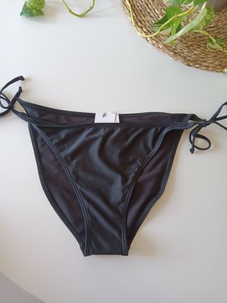 Braga de bikini negra, talla L. Es una prenda elegante y sencilla. - Ideal para combinar con otras prendas de baño. - Diseño clásico y atemporal. - Confeccionada con un tejido suave.