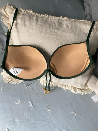 Sujetador de bikini con un bonito diseño. - Efecto push. Copas 85B - Sin estrenar. - Detalle de cordón en el centro. - Tirantes regulables.