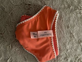 Exquisito Bikini de la marca Hunkemöller en color naranja. - El tallaje (36-38). - Detalle de borde blanco. - Diseño de corte brasileño.