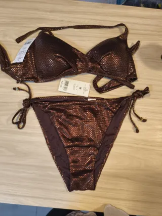 NUEVO Bikini Calzedonia Marrón y Dorado Talla M