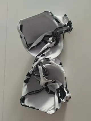 Parte superior de bikini con un estampado en blanco y negro. - Se ata parte posterior con lazo. - Tirantes ajustables. - Completamente nuevo a estrenar. - Posibilidad de entrega en persona en Madrid. - Se pueden hacer lotes.