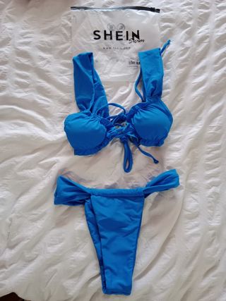 Bikini cruzado y braga tanga talla M totalmente nuevo, sin utilizar, no se ha utilizado por tener mucho pecho y no entrar, es precioso