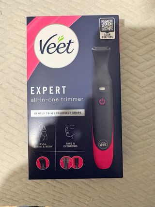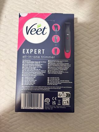 Depiladora Veet EXPERT todo en uno, ideal para zonas íntimas y el rostro. Viene en su empaque original. - Incluye accesorios para diferentes usos. - Certificación IP67 para resistencia al agua. - Fabricada en China.