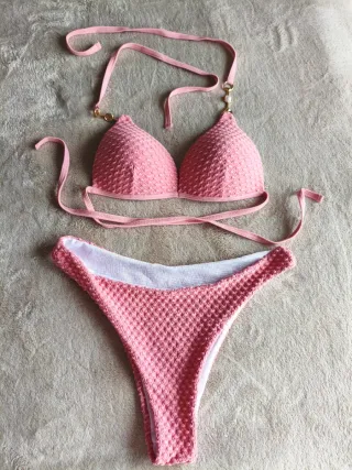 Bikini de mujer color rosa, de Shein. Talla 38 / M. Composición: 90% poliéster, 10% elastano. Está nuevo, sin estrenar. TIENE ACTIVADO EL ENVÍO, NO VENTA EN PERSONA.
