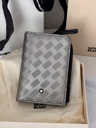 Tarjetero monedero Montblanc Extreme 3.0 en piel plateada. Es nuevo con etiquetas y se entrega con la funda , caja , estuche y preparado para regalo . Dimensiones 11.5x8.5 cm