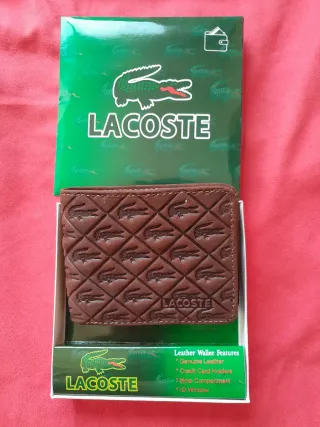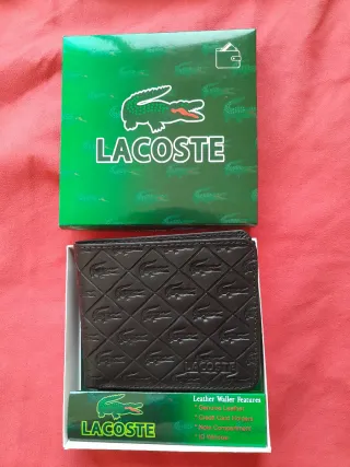 Elegantes billeteras de piel de la marca Lacoste. Elije una de ellas el precio es por cada una. Si quieres ambas podemos negociar el precio - Material: Piel genuina. - Compartimentos para tarjetas de crédito. - Compartimento para billetes. - Ventanilla para identificación.