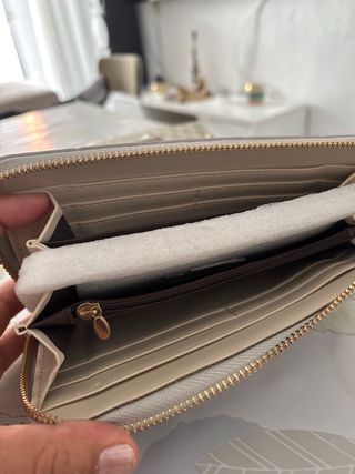 Monedero de material tipo ante, con varios compartimentos., nuevo con etiqueta.