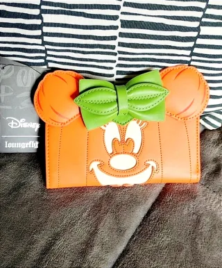 Cartera billetera face pumpkin Minnie Mouse con departamento para las monedas con cremallera. Brilla en la oscuridad.