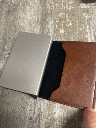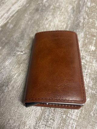 Billetera y tarjetero de piel marrón