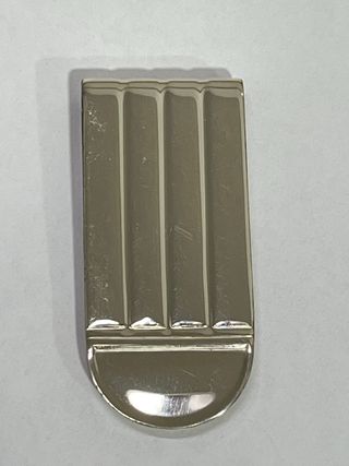 Elegante billetera de plata 925 milésimas. - Diseño clásico con líneas verticales. - Acabado pulido brillante. - Detalle curvo en la parte inferior.