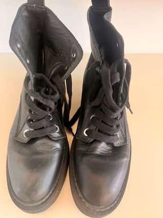 Botines de piel negros con cordones. - Cierre de cordones. - Detalle de ojales metálicos. - Suela gruesa. - no pesan nada