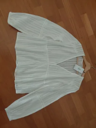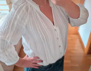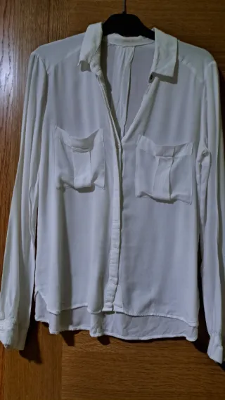 Camisa blanca de cuello mao con manga tres cuartos abotonada. Talla S de Sfera (es amplia, vale para una M). Usada muy pocas veces.
