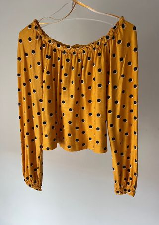 Blusa de Bershka con estampado de lunares. - Diseño con escote elástico. - Mangas largas abullonadas. - Tejido ligero y estampado llamativo.