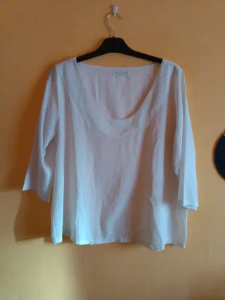 Blusa de manga tres cuartos con escote redondo. - Tejido ligero y vaporoso. - Diseño elegante,holgado y cómodo. Sisa, 55 cm Largo, 59 cm