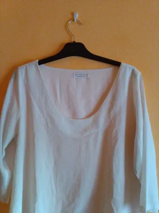 Elegantisima blusa de seda natural combinable con todos los colores de falda o pantalón.Cuello redondo, sin manga.Mide 60cm