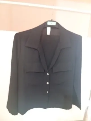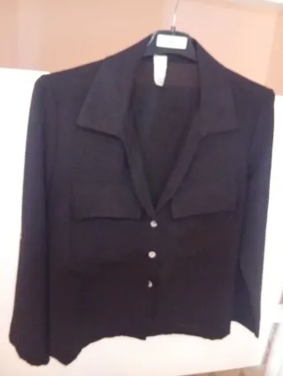Elegante blusa negra con un diseño clásico. - Dos bolsillos frontales con solapa. - Cierre de botones. - Cuello camisero.