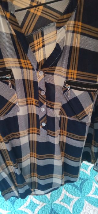 Blusa de manga larga con un diseño de cuadros. - Cuello camisero. - Cierre de botones. - Bolsillo en el pecho.
