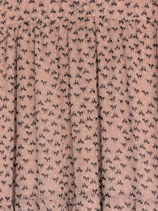 Blusa con un divertido estampado de gatos en tonos beige y negro. Su diseño es ligero y con un corte favorecedor. - Estampado de gatos y topos. - Escote en V. - Mangas cortas abullonadas. - Volante en el bajo.