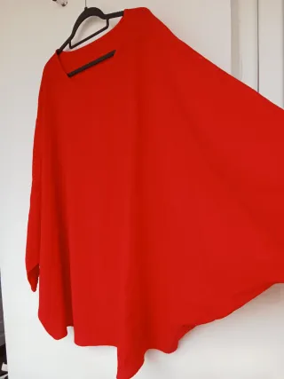 Blusa elegante de manga francesa con un diseño moderno. - Color fucsia anaranjado vibrante (no se aprecia bien el color, en la foto parece rojo) - Cremallera en la parte trasera. - Corte asimétrico en el bajo. - Tejido semitransparte y cómodo (no se arruga) Nueva sin etiqueta. No la llegué a estrenar porque no me vale de talla.