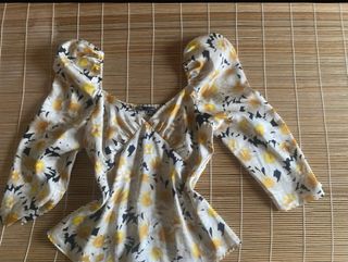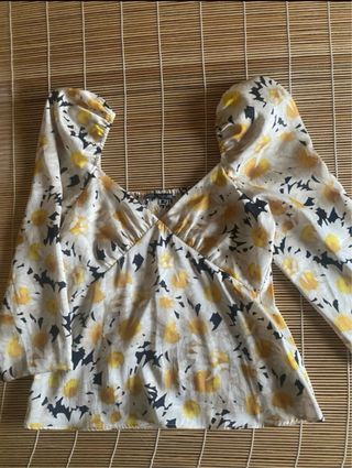 Blusa de Zara con un estampado floral vivo y muy combinable tanto para vestir como para vaqueros. Tejido Satinado perfecta para cualquier ocasión. Es una T/XS en etiqueta pero talla bastante valiendo también para tallas 36 y 38. Sin Estrenar. Precio no negociable