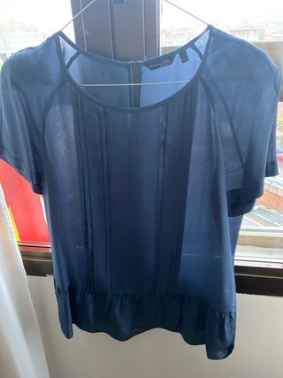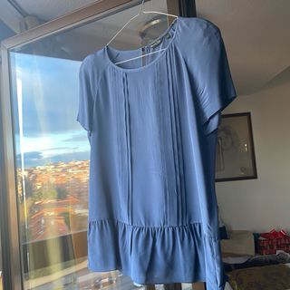 Blusa seda natural azul cobalto. Con discreto volante al final. Mide85cm. Cuello redondo. Manga corta holgada