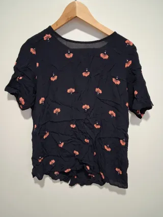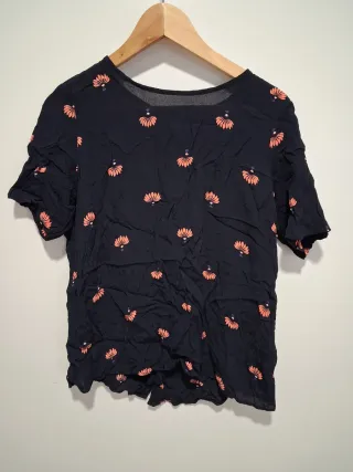 Bonita blusa con estampado de flores. Yo tengo la m y me queda bien - Manga 3/4. - Diseño cruzado en el escote. - Tejido ligero.