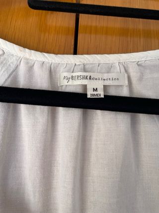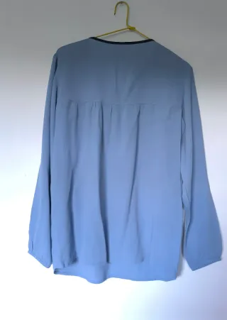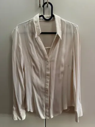 Blusa de Bershka con un diseño delicado y elegante. - Tejido ligero con textura de topos. - Escote en V. - Cierre de botones. - Mangas largas abullonadas. Cualquier pregunta no dude en hablarme, precio negociable.