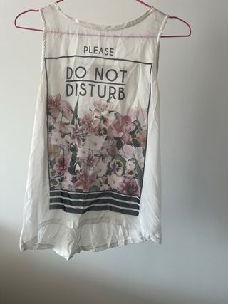 Blusa sin mangas con un diseño llamativo y estampado floral. - Escote pronunciado en V. - Estampado gráfico en la espalda. - Detalle floral en la parte delantera.