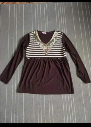 Elegante blusa con un suave tejido y un detalle especial en el pecho. Su diseño a rayas verticales la hace muy estilosa. - Tejido suave al tacto. - Adorno distintivo en la zona del escote.