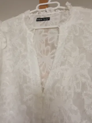 Bonita blusa con estampado floral en tonos blancos y rosas. Es ligera y tiene un diseño muy femenino. - Manga larga. - Cuello redondo con detalle de encaje. - Cierre de cordones en el escote. - Puños y bajo elásticos. Precio 3.50 euros no negociables ◾ No acepto ofertas ◾ Solo venta por envios ◾ Envio en menos de 24 horas después de su compra.