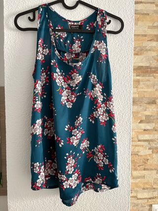 Blusa de tirantes con un bonito estampado floral. - Diseño sin mangas. - Escote redondo. - Estampado de flores blancas y rojas sobre fondo azul.