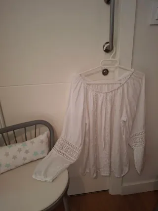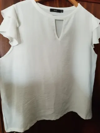 Blusa blanca con un diseño moderno y favorecedor. Talla entre S y M, no da más talla.