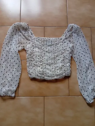 Blusa de lunares blanca y negra talla xs