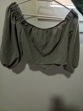 Blusa corta de Zara con un diseño muy favorecedor - Mangas con volantes y detalles troquelados. - Escote elástico. - Cierre de botones en la parte delantera. Parte trasera con frunce Apenas usada