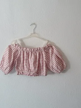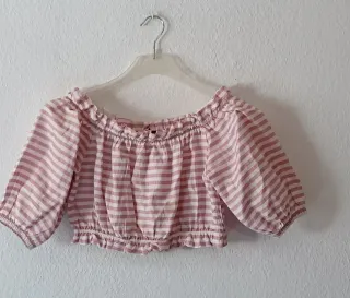 Blusa corta a rayas rosa y blanca T-S