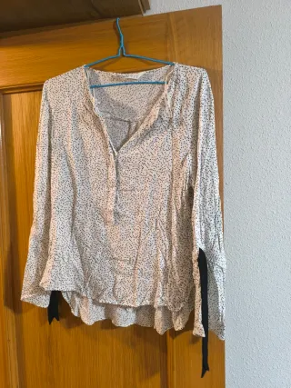 Bonita blusa con estampado floral en tonos blancos y rosas. Es ligera y tiene un diseño muy femenino. - Manga larga. - Cuello redondo con detalle de encaje. - Cierre de cordones en el escote. - Puños y bajo elásticos. Precio 3.50 euros no negociables ◾ No acepto ofertas ◾ Solo venta por envios ◾ Envio en menos de 24 horas después de su compra.