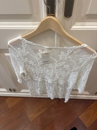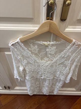 Blusa Zara boho encaje blanco talla única