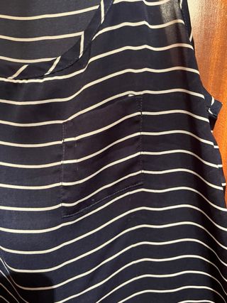 Preciosa blusa sin mangas, de algodón ligero, con un diseño de rayas azules y blancas. Es de corte amplio y tiene una forma favorecedora. - Cuello redondo - Bolsillo delantero - Bajo ligeramente redondeado